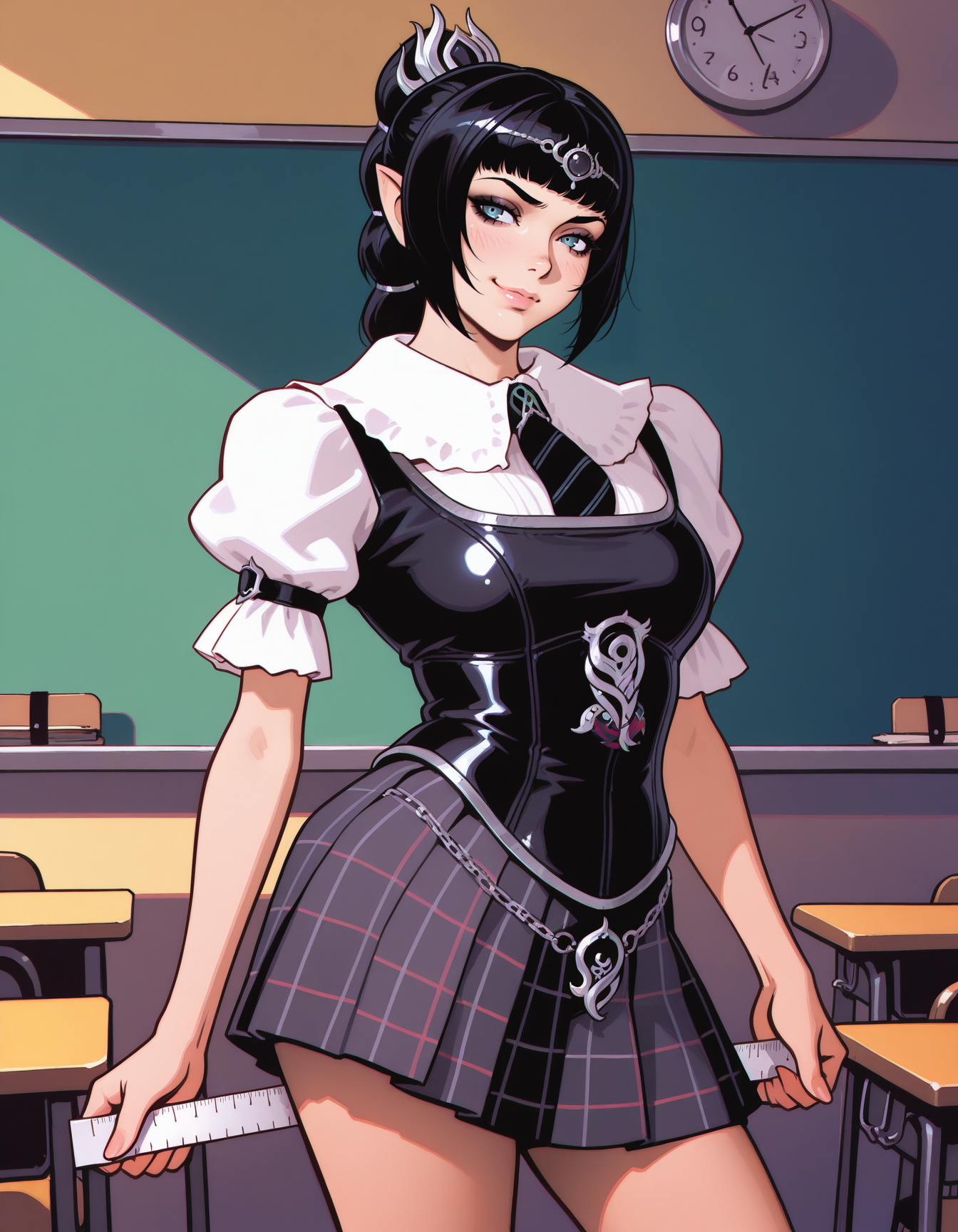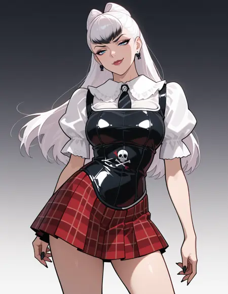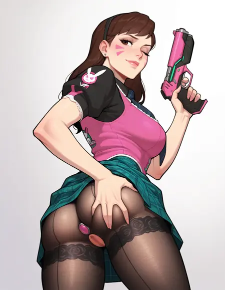 The fun part is that it can lay down logos in the middle, as the original outfit had a cutsey bunny flower thing in the middle of the bodice/vest. Since it's gibberish to SD it wants to put things there, skulls, cats, bunnies, etc. Some characters will hard override the logo, like d.va \(overwatch\) or princess peach