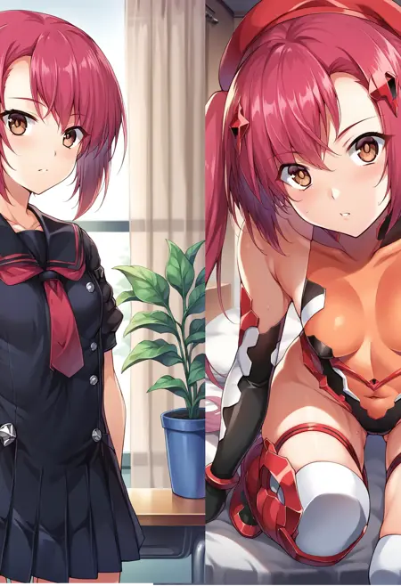 触发词: c-kirika,粉发,侧马尾,棕眼,小胸,超长发,