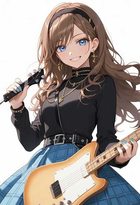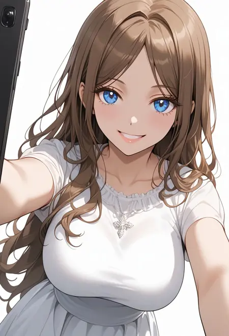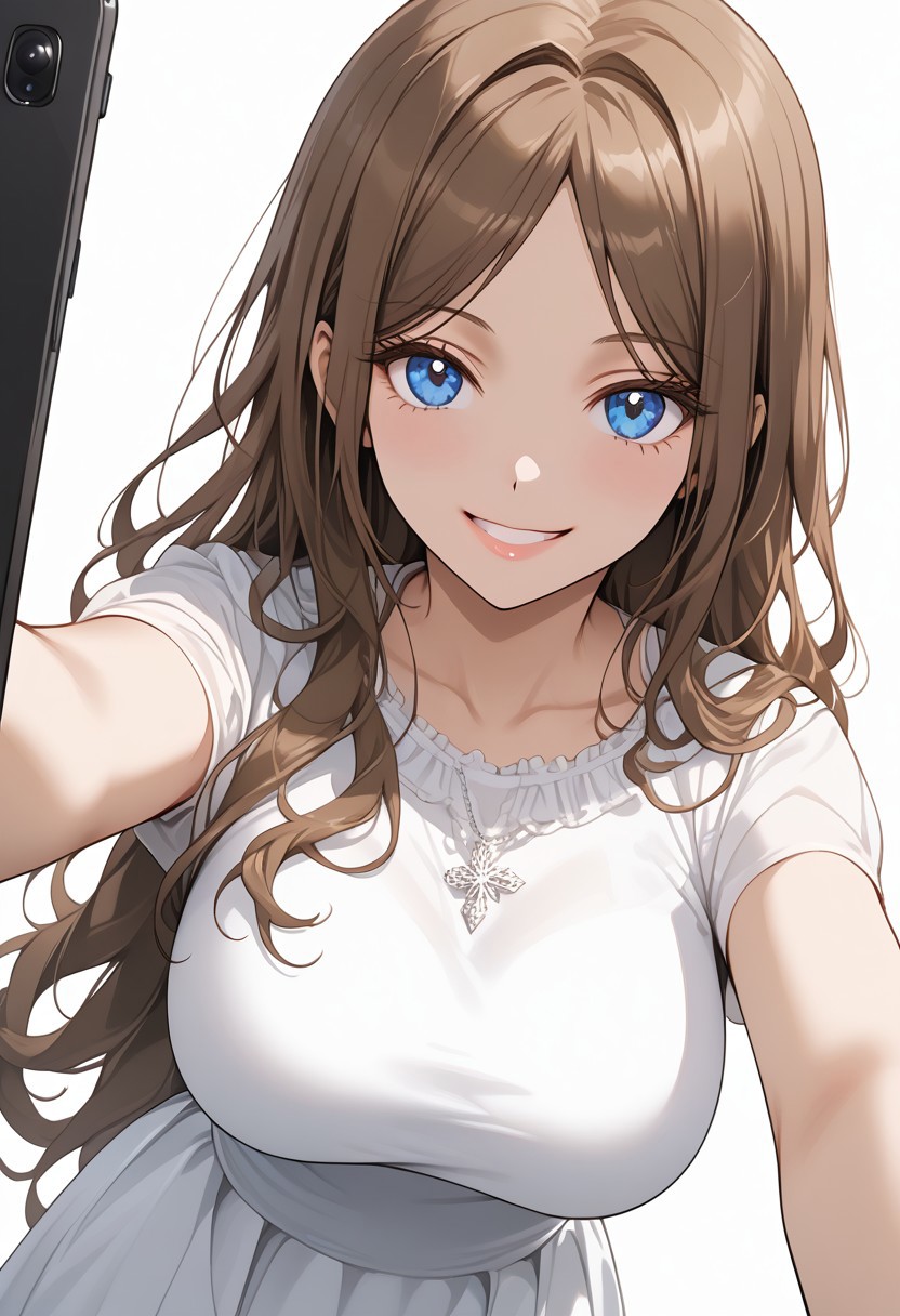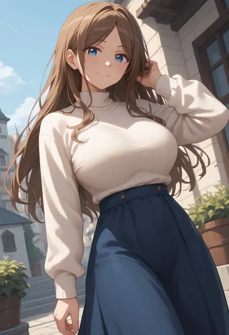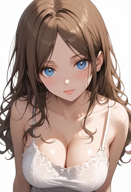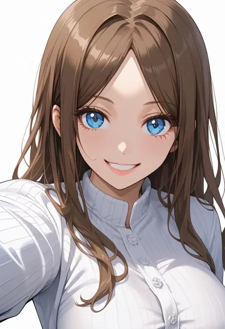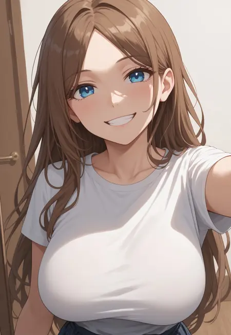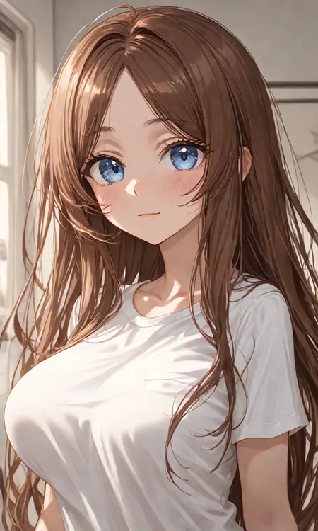 soyo_n, long hair, parted bangs, blue eyes, brown hair, large breasts