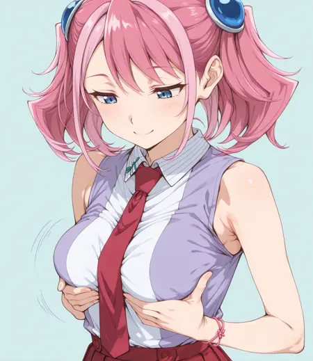 ・制服の色が安定しない場合は「purple shirt」や「gray shirt」を指定してください。 「collared shirt」の指定は無くても安定するので、「collared shirt」の代わりに上記を指定するといいかも。
