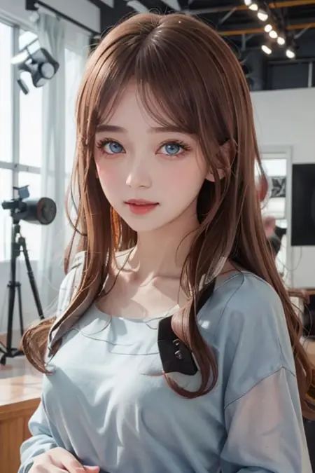 soyomygo, 1girl, solo, long hair, brown hair, blue eyes