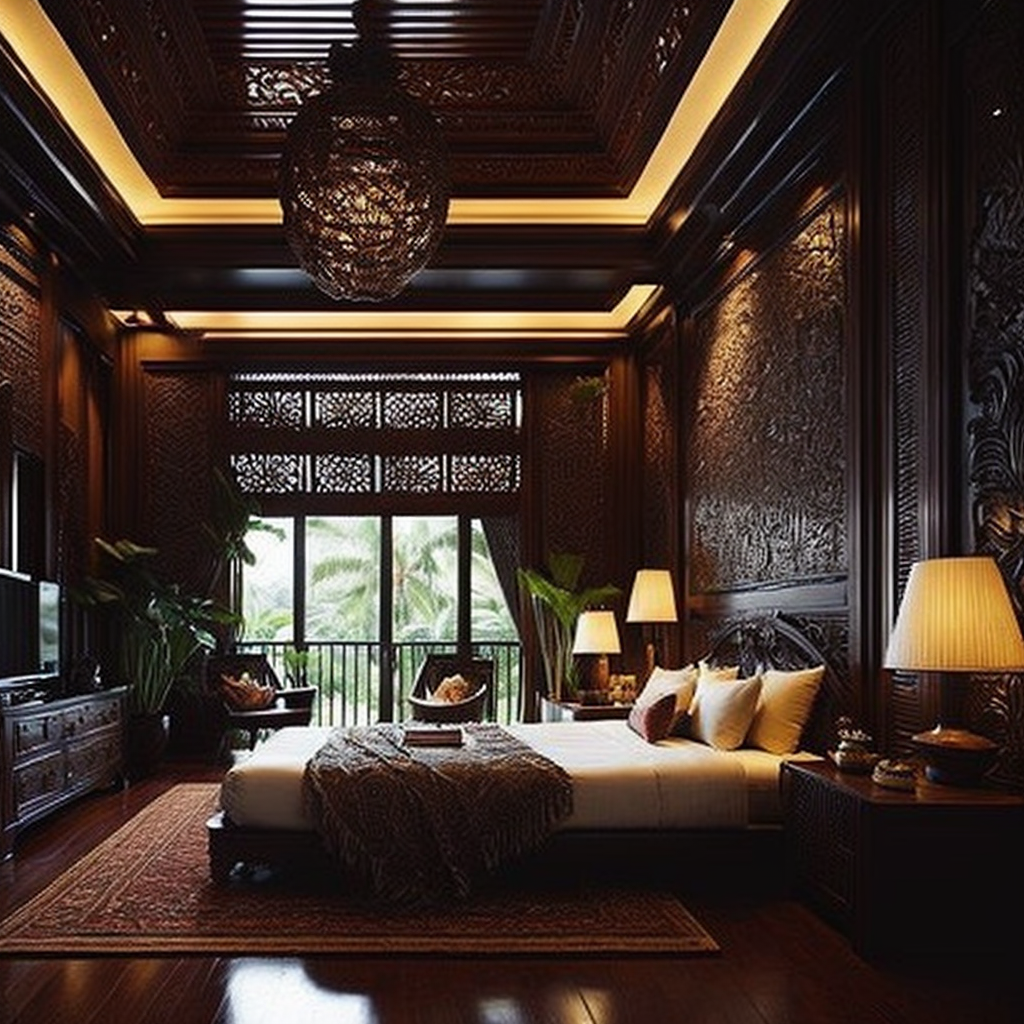 The color palette tends to be warm, with earthy tones and vibrant accents. Materials like teak, bamboo, rattan, and batik fabrics are often used, providing a connection to the natural environment.