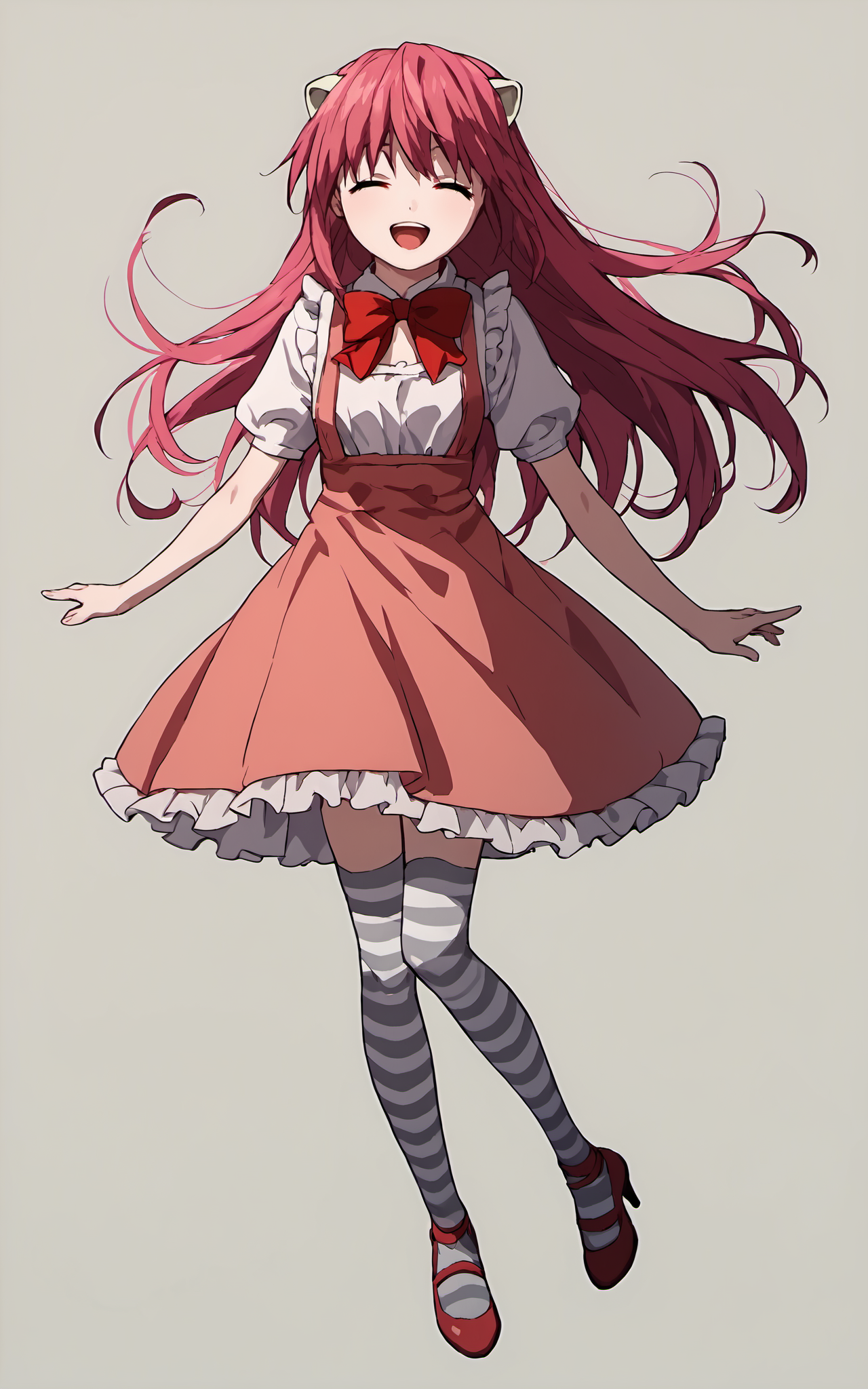 트리거 단어: "1girl, solo, long hair, horns, red eyes, pink hair, red hair" 그녀는 특징적인 의상이 별로 없어서 프롬프트로 사용할 게 없어요.