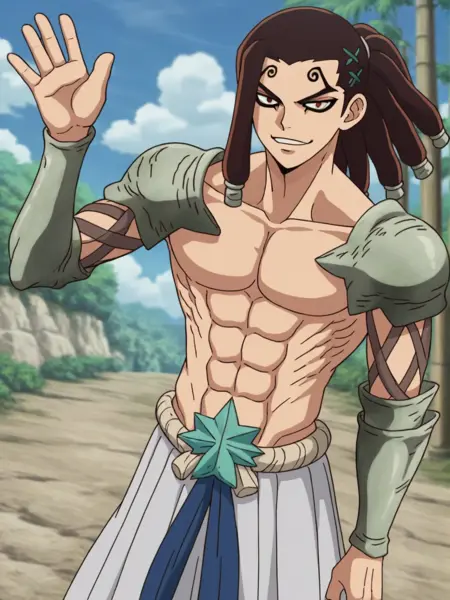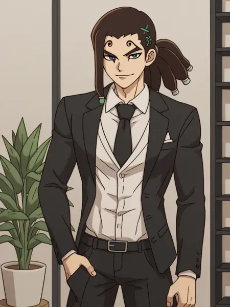 트리거 단어: mozu, 1boy, 검은 머리, 눈썹 위 문신, 말꼬리 머리, 어깨 갑옷