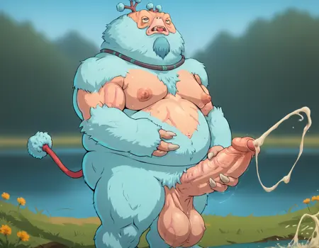 使用:意大利调味饭,大型雄性,拟人化,蓝色毛发,毛茸茸的雄性,尾巴,聚焦于多毛的身体,疤痕,爪子