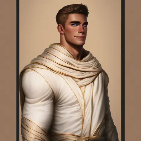 推荐触发词:浅棕色头发,蓝色眼睛,古铜色,晒黑的皮肤,英俊