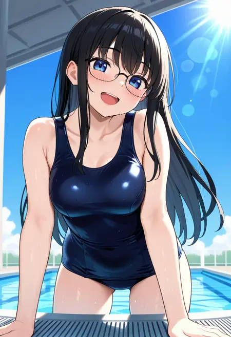 배꼽 오목을 줄이기 위해 아래의 Negative prompt를 추가하는 것을 강력히 권장합니다. (효과는 약간밖에 없지만… 배꼽 오목감은 오래된 스쿨 수영복의 원단 질감을 해칩니다.) 마찬가지로 오래된 스쿨 수영복의 로우레그 감을 안정적으로 생성하기 위해 Negative prompt에 "higleg"도 추가해 주세요.