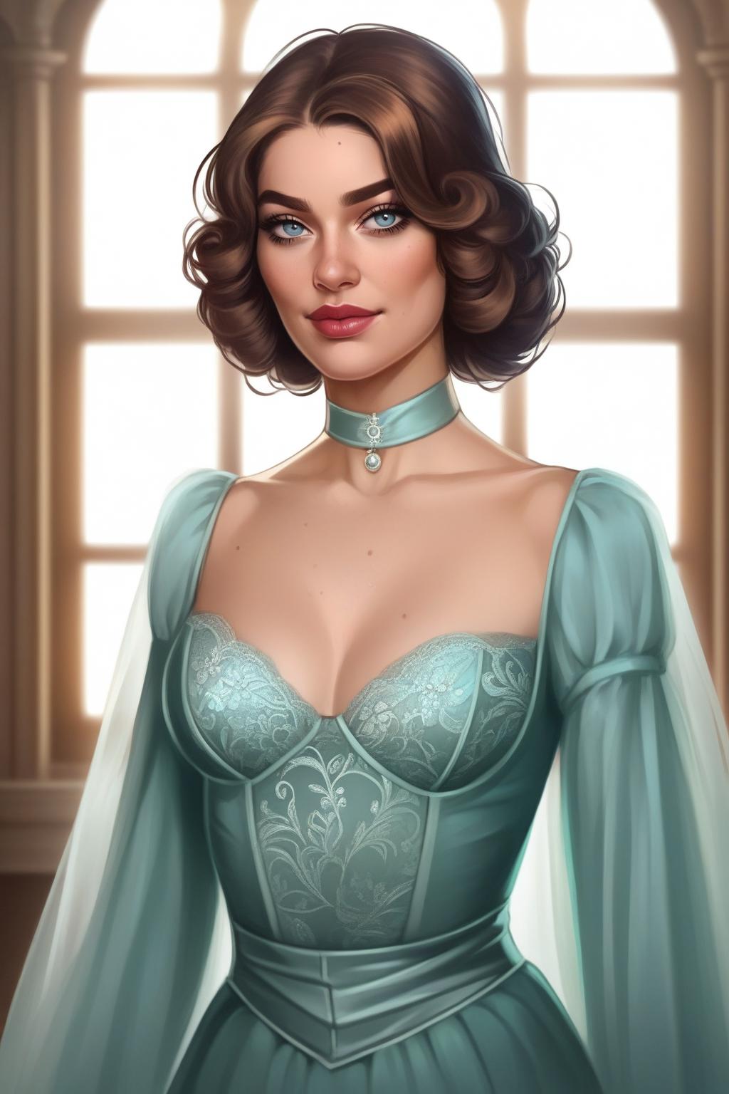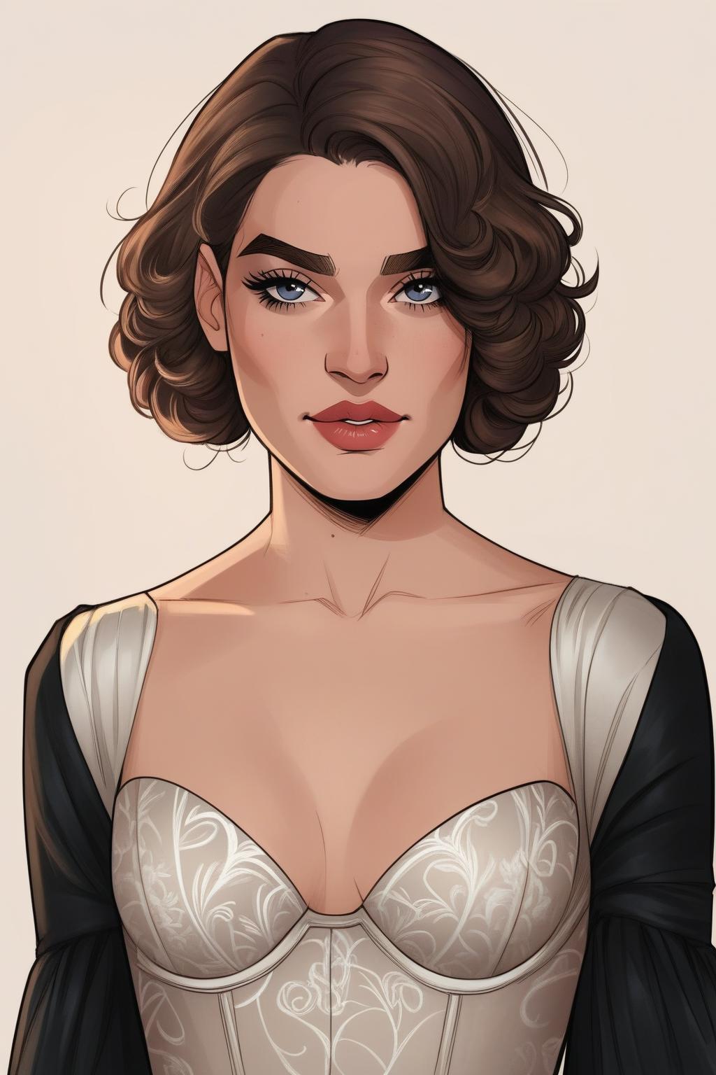 woman, girl,high_cheekbones,full lips,defined_eyebrows,wavy_brown_hair,side_swept_style,cascading_curls,voluminous_hair, old_hollywood_glamour, theo