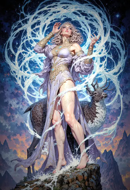 The idea of this lora is to create fantasy art illustration that are full of detail and color. The model was trained with a specifffic pattern to add control over generations.