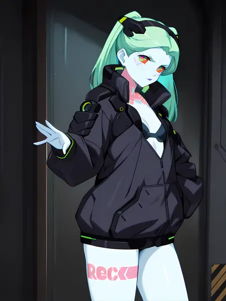 | トレーニングワード | rebecca, green eyes, green hair, colored skin, colored sclera, white skin, red sclera, artificial eye, mechanical eye, cyborg, red pupils,purple lips,makeup, コピーしました! rebeccaunder, long hair, straight hair,underwear, black bra, black panties, stomach tattoo, neck tattoo,leg tattoo,コピーしました! rebeccadress,twintails, underwear, black jacket, tattoo, black hairband, hair ornament,black bra, neck tattoo,,leg tattoo, partially unzipped,コピーしました! |