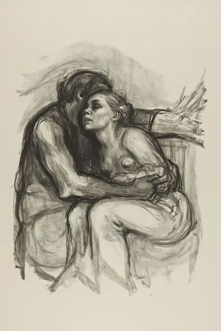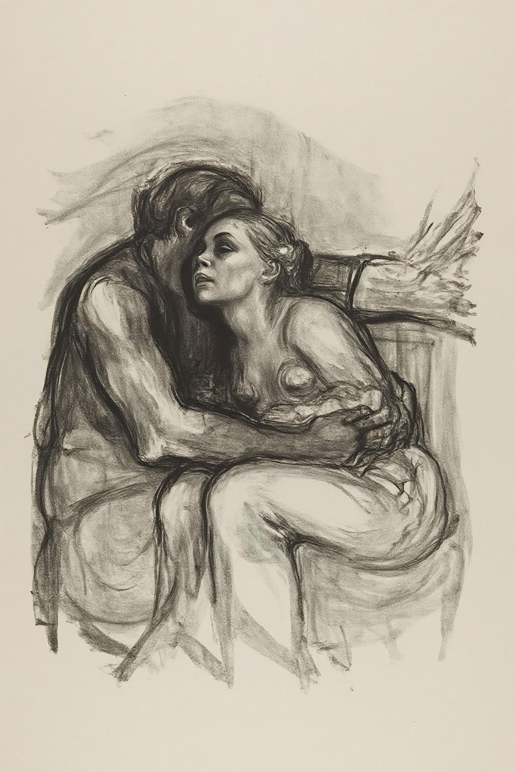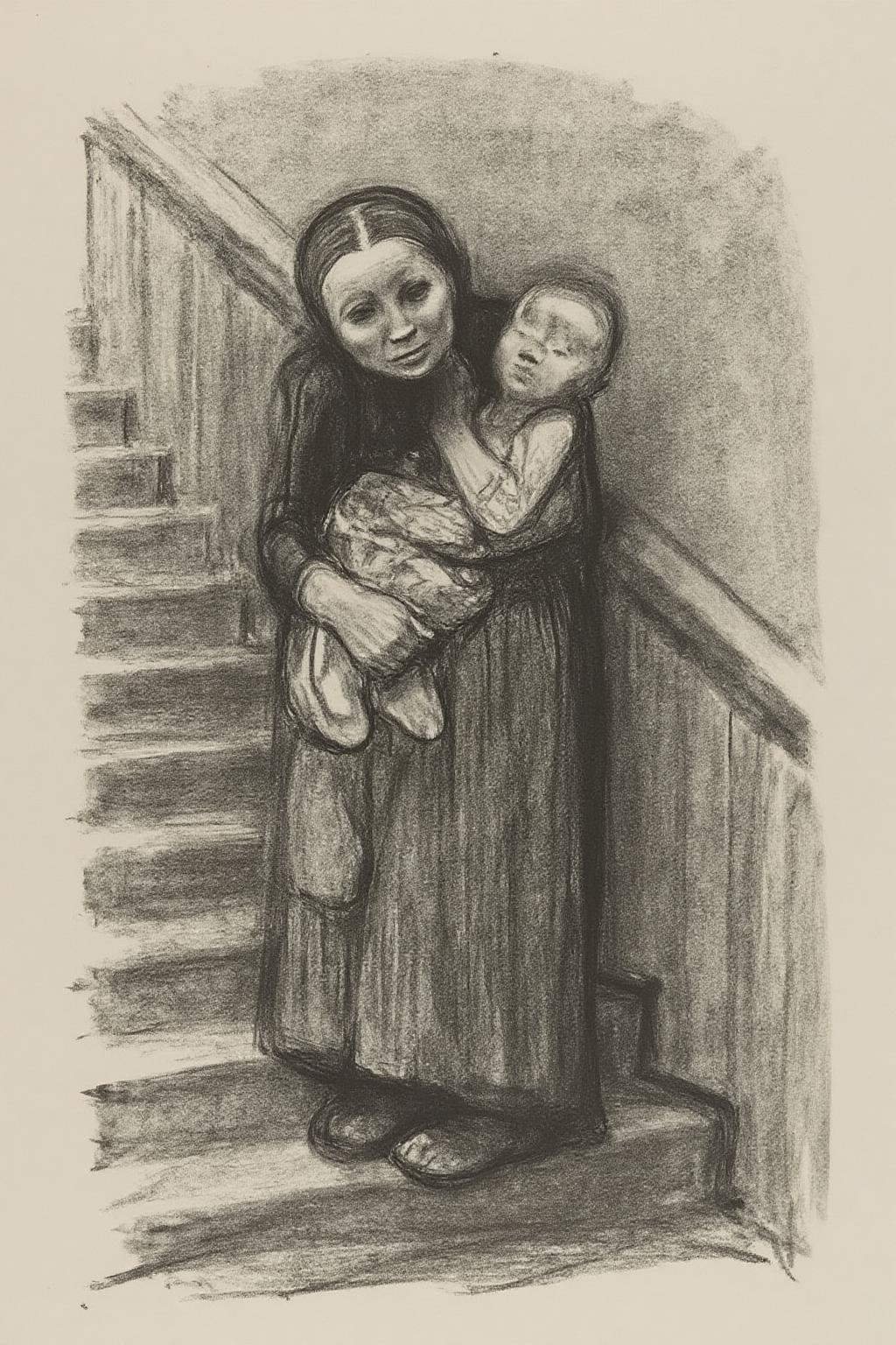 Käthe Kollwitz Lithography/Charcoal Style: Love, Suffering and Depair