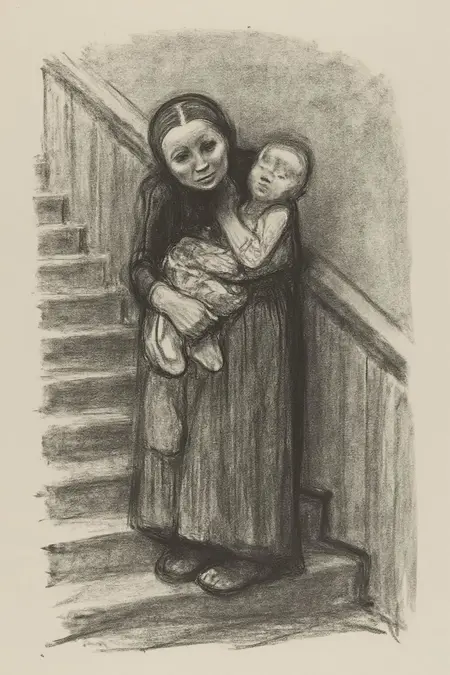卡特·柯勒惠支(1867年7月8日–1945年4月22日) 是一位德国艺术家和版画家,以其情感强烈的作品闻名,这些作品描绘了工人阶级的苦难、战争的影响以及妇女与儿童的悲惨处境。凭借在蚀刻、石版画、木刻和雕塑方面的卓越技艺,柯勒惠支成为她那个时代最具影响力的艺术家之一,将社会批判与深刻的人性关怀融为一体。