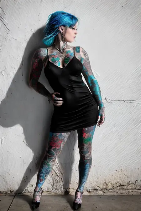 タトゥー入りの女性の公開されているアートワークから学習され、インスパイアされたAIモデル。