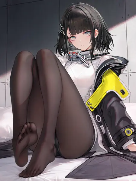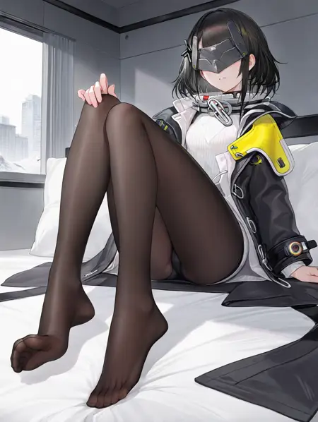 black jacket, white sweater,pantyhose,