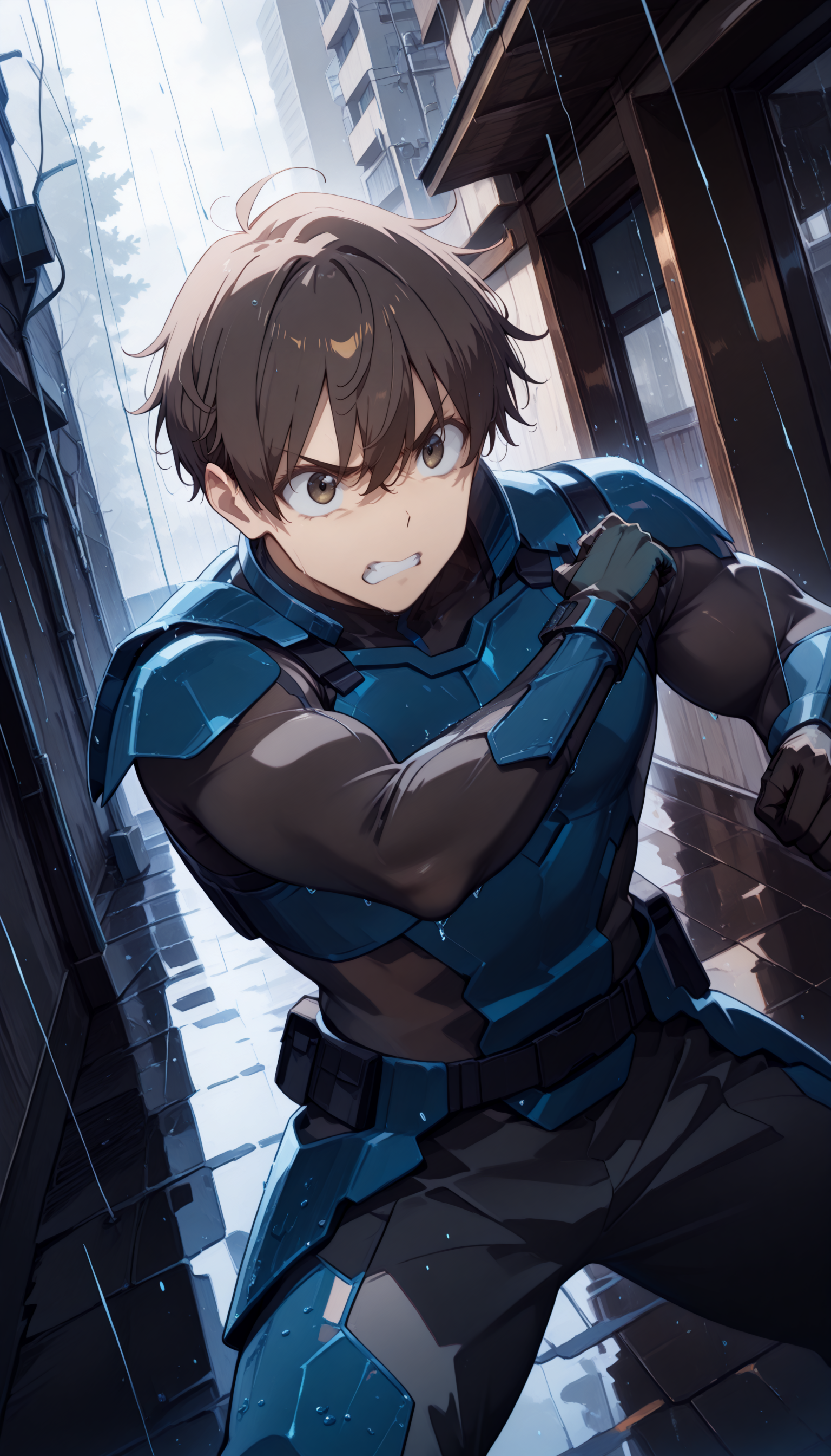 armor, blue armor, black undersuit