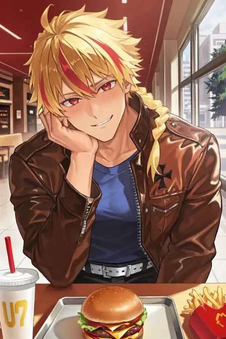 トリガー語: r1chard, 赤い目, 金髪, 多色の髪, ストライプ状の髪, 赤髪, 単一の編み込み