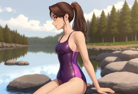 服装(残暴营地) - 紫色连体泳衣,竞赛泳衣