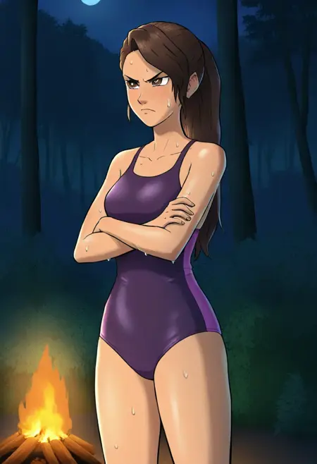 服装(残暴营地) - 紫色连体泳衣,竞赛泳衣