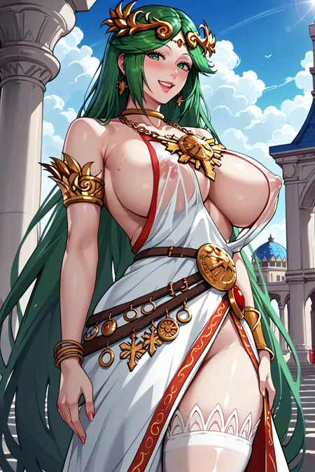 NSFW(挑逗):((areola slip, areolas visible)), ((cameltoe)), (sweating), (naughty smile, biting lip)