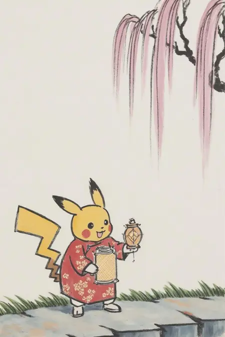 愛される中国の芸術家Feng Zikai(豐子愷)の水墨画19点を用いて学習されました。彼が一般の人々の日常生活の中にあるシンプルな喜びを、簡素でほとんど子供のような筆致で描いた作品は、中国人にとってすぐにわかるスタイルです。彼の作品はこちらでご覧になれます:https://www.artnet.com/artists/feng-zikai/