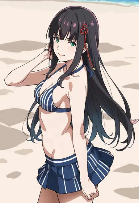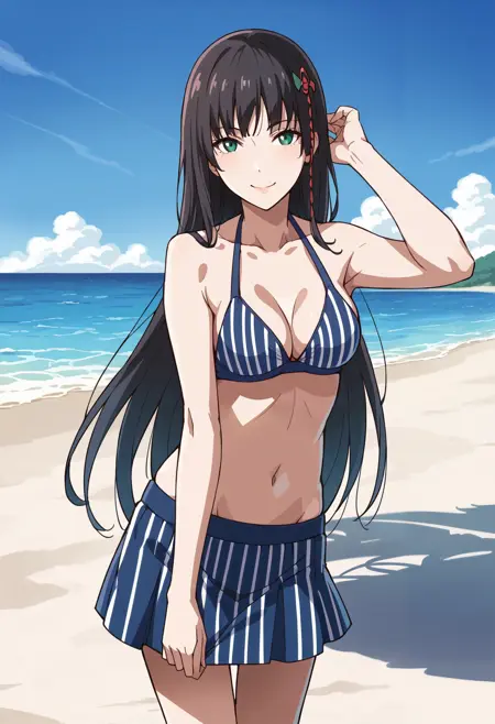 p5hifumi-swim, 青いビキニ, 横縞のビキニ, ビキニスカート,
