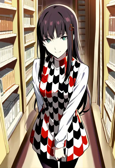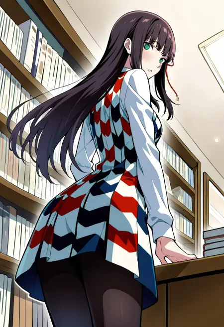 p5hifumi-dress, 红蓝格子连衣裙, 黑色丝袜, 长袖,
