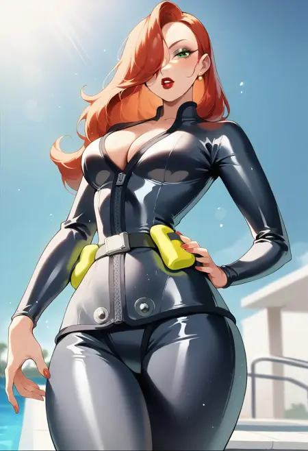 Use wetsuitVTG for triggering, you may try to add "oval dive mask", "weightbelt" and "knife strapped to leg" to accessorize, for the dive mask it's better to use in conjunction with this LoRA: /model/1108000?modelVersionId=1244886 since that was trained in a larger dataset.
