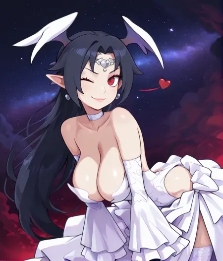 melodia、とがった耳、長い髪、赤い目、黒い髪、