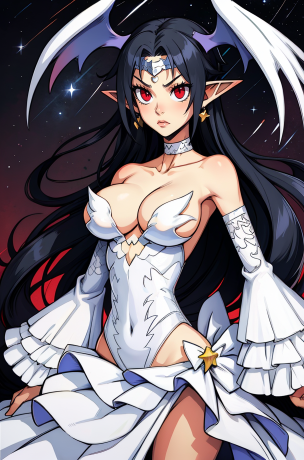 珠宝或耳环、露胸、紧身衣、带荷叶边的白裙,或白色长裙、白色项圈、可拆卸袖子、花环、——锁骨,