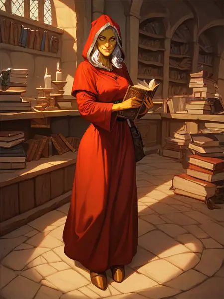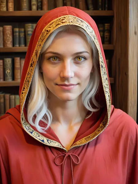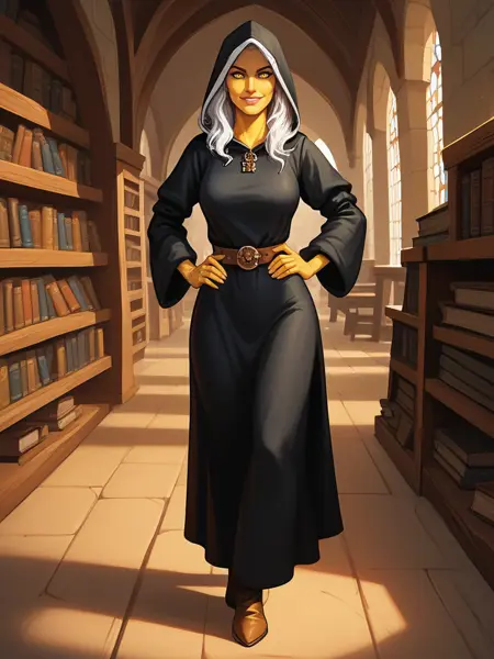 raistlin, 1girl, female focus, white hair, yellow eyes, golden skin