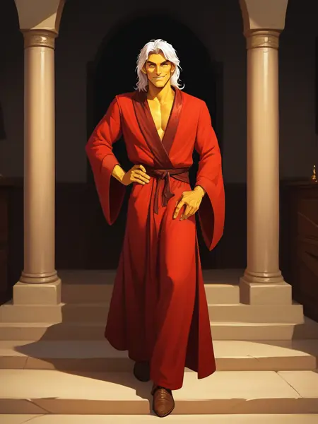 raistlin, 1boy, male focus, white hair, yellow eyes, golden skin