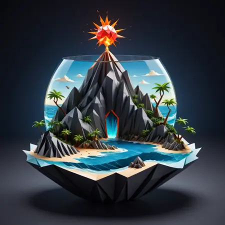 낮은 다각형 랜드스케이프, 픽셀화된, 3D 및 등각 스타일의 섬과 오브젝트 게임 자산 생성.