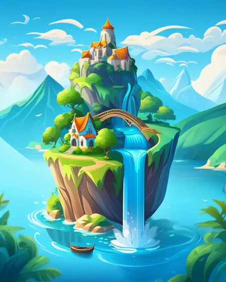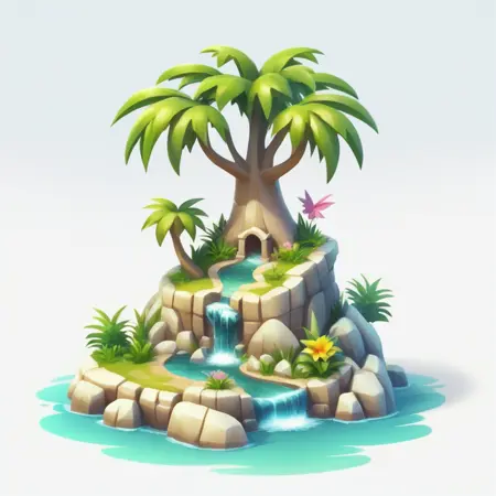 generating game assets like islands and objects in low polygonal landscapes, pixelated, 3D, and isometric styles.