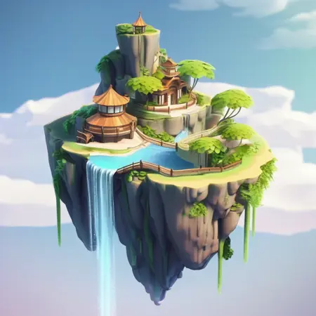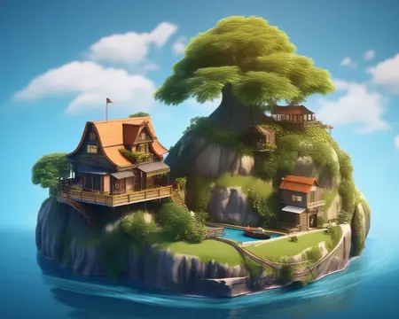 generating game assets like islands and objects in low polygonal landscapes, pixelated, 3D, and isometric styles.