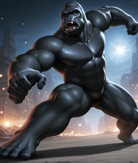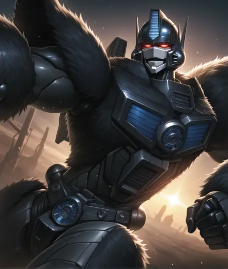 convoy,no human,gorilla,black skin,fighting,black body,solo,outdoor,