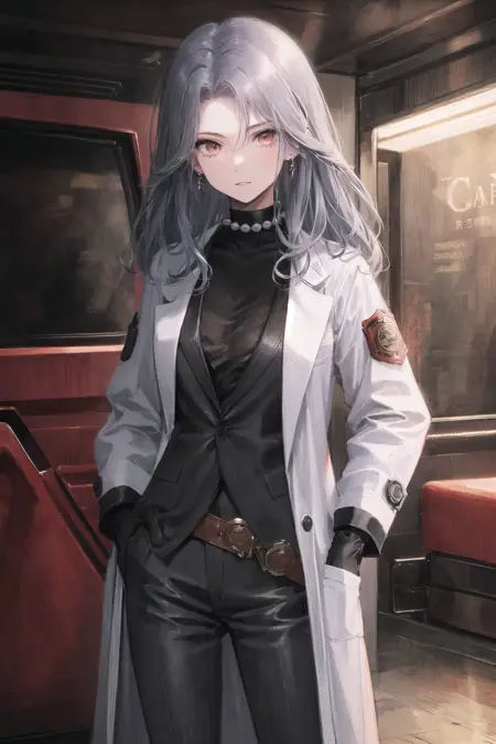 OG 복장: 장갑, 진주 목걸이, 바지, 실험복,