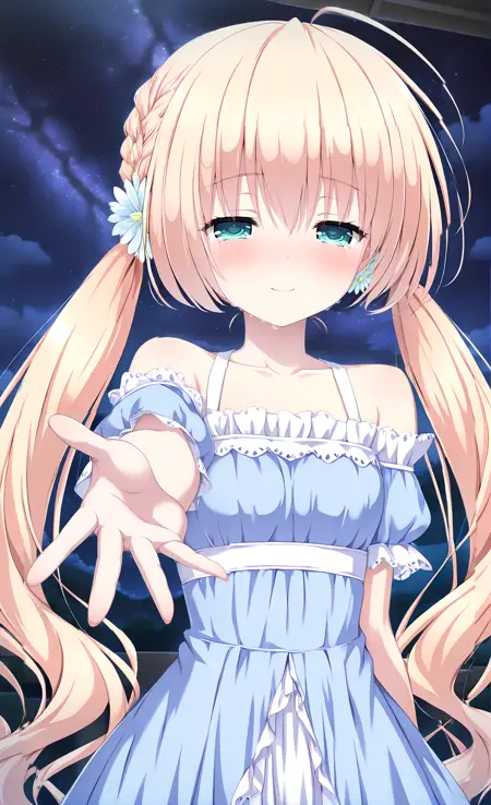 基础:火莉,长发,金发,绿眼,发饰,发花,花朵