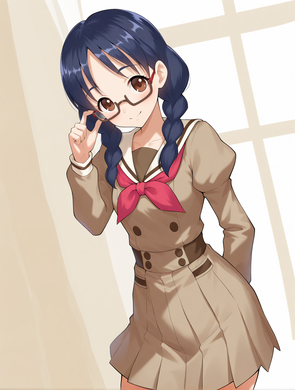 (yui_def,black hair,semi-rimless eyewear,school uniform)