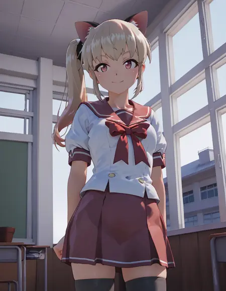 rozekurusubara, 赤い目, 金髪, 長い髪, サイドポニーテール, 猫の耳, 学校制服, serafuku, セーラー collar, シャツ, スカート, タイツ,