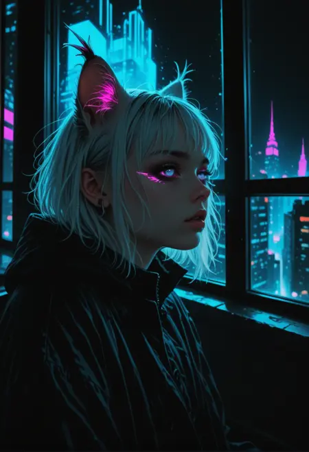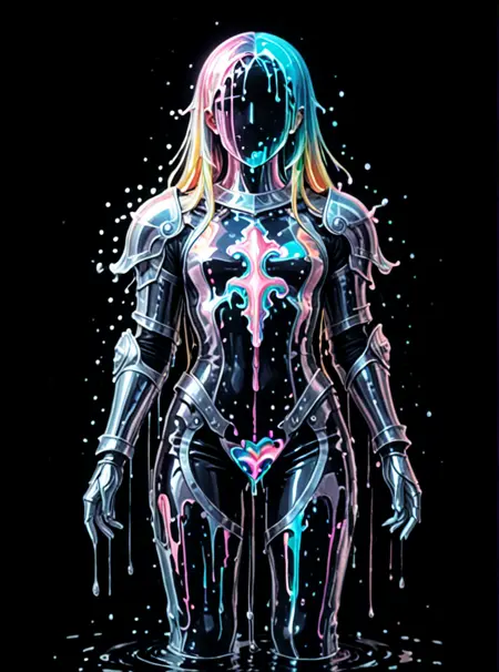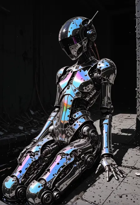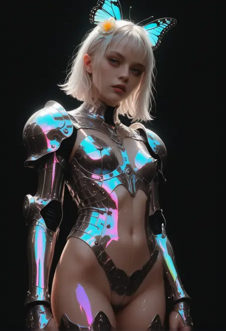 활성화하고 선호하는 스타일을 지정하려면 시작 부분에 "iridescent_holographic" 태그를 사용하세요. 사실적이거나 반사실적인 생성과 잘 어울리지만, 애니메이션에도 적용될 수 있습니다. 다만, 이에 대해서는 추가 테스트가 필요합니다.