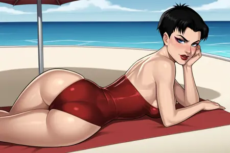 기본 프롬프트: 완다 맥시모프, 단발, 검은 머리, 파란 눈, 메이크업, 립스틱, 붉은 입술