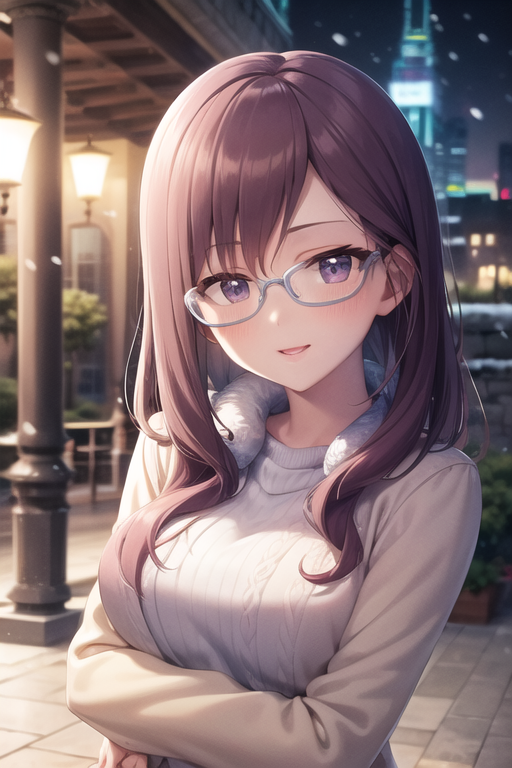 yagami makino, glasses, 1girl, purple eyes, purple hair