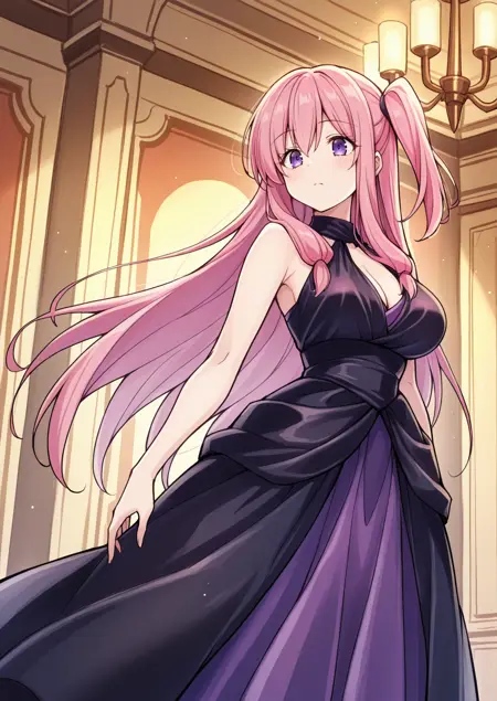 外見:ilshizuri、非常に長い髪、ピンクの髪、片方だけ上げたスタイル、サイドロックス、紫色の目