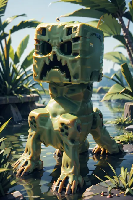 The lora is made from screencap and artworks so you get many different styles of creepers some square and some realistic or scary.