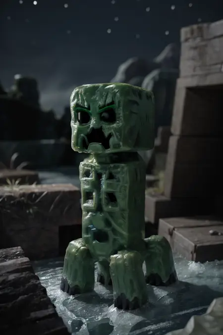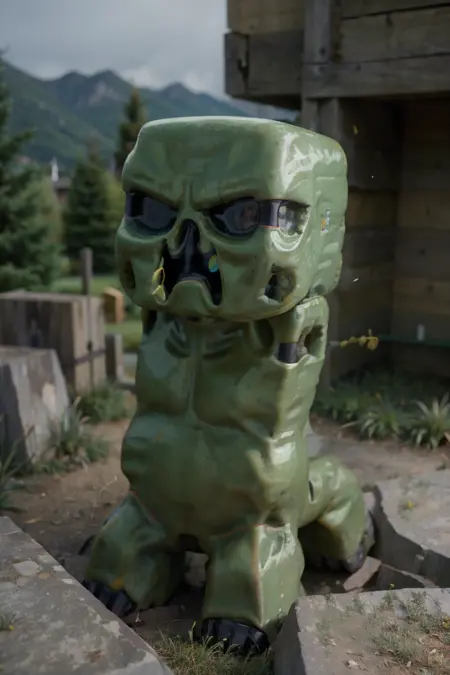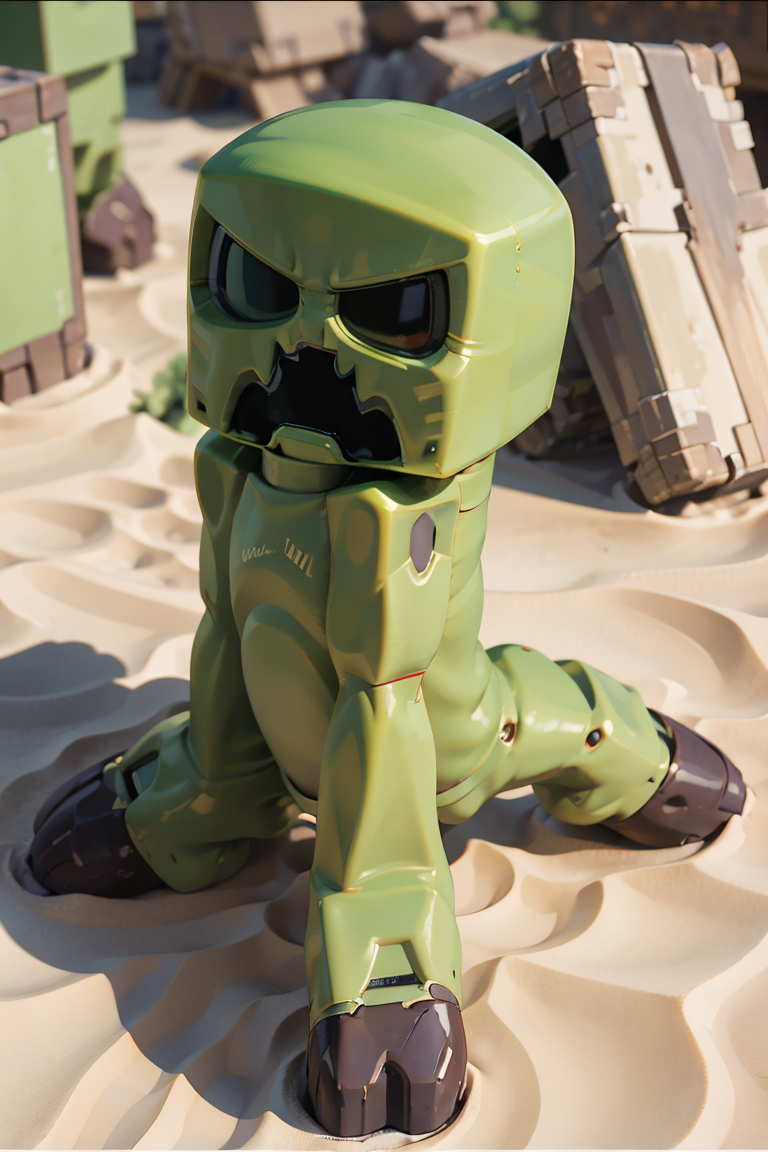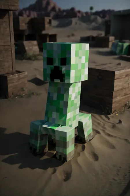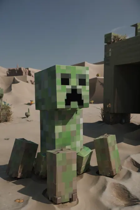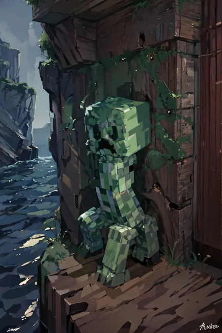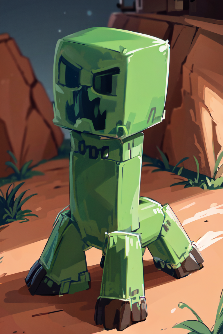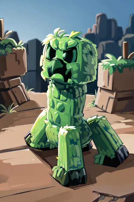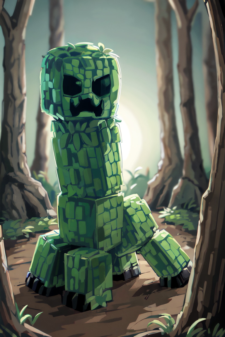 The lora is made from screencap and artworks so you get many different styles of creepers some square and some realistic or scary.