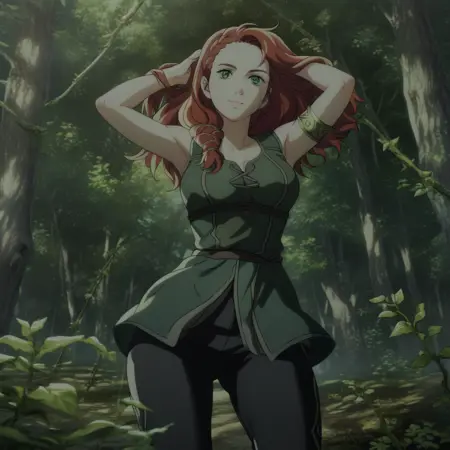 h3rahamm3rhand, red hair, long hair, braid, green eyes