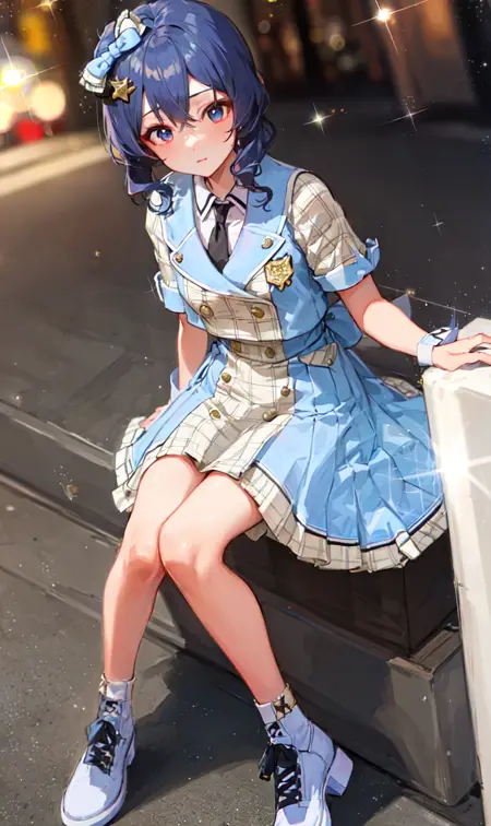 future signature (costume), blue clothes, blue hair bow, blue footwear