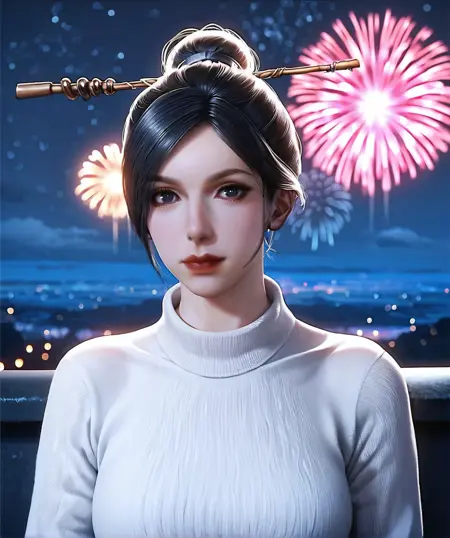 - 헤어스타일: single hair bun
