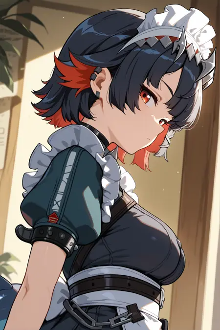 | 训练词汇 | shark girl, ellen joe, zenless zone zero characters, zenless zone zero 1girl, short hair, bangs, shirt, black hair, red eyes, upper body, red hair, multicolored hair, solo focus, choker, indoors, virtual youtuber, two-tone hair, black choker, piercing, ear piercing, colored inner hair,已复制! |