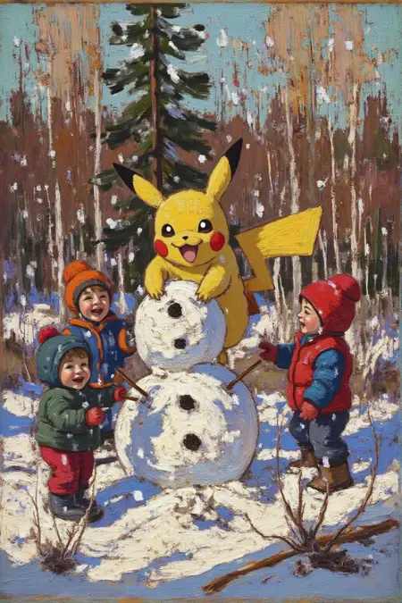 LoRAは風景画のみで学習されていますが、このLoRAで生成されるどの絵画にも、トンプソン独自のインパスト技法と色彩パレットが顕著に現れます。そこに何か魔法のようなものがあるのです😅。完全な効果を得るには、重みを1に設定してください。